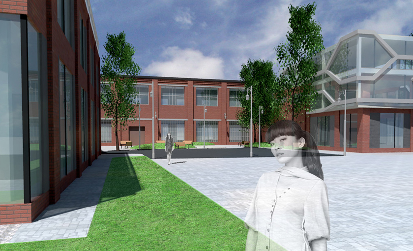 - Rozbudowa istniejącego, historycznego budynku przemysłowego. Nowy budynek nawiązujący formą do przemysłowego otoczenia mieści biura oraz usługi.