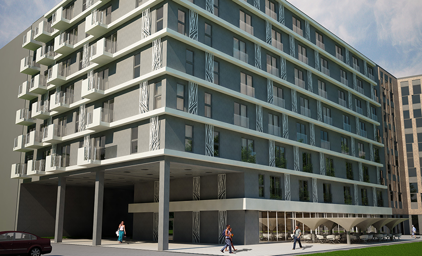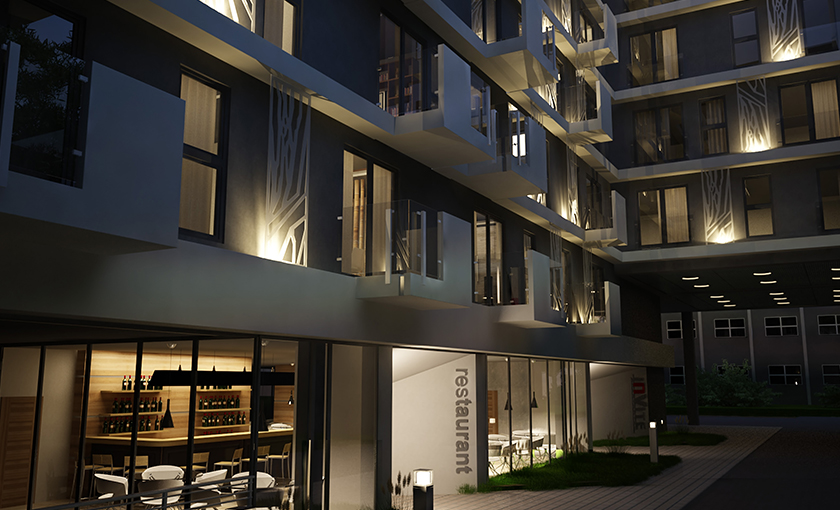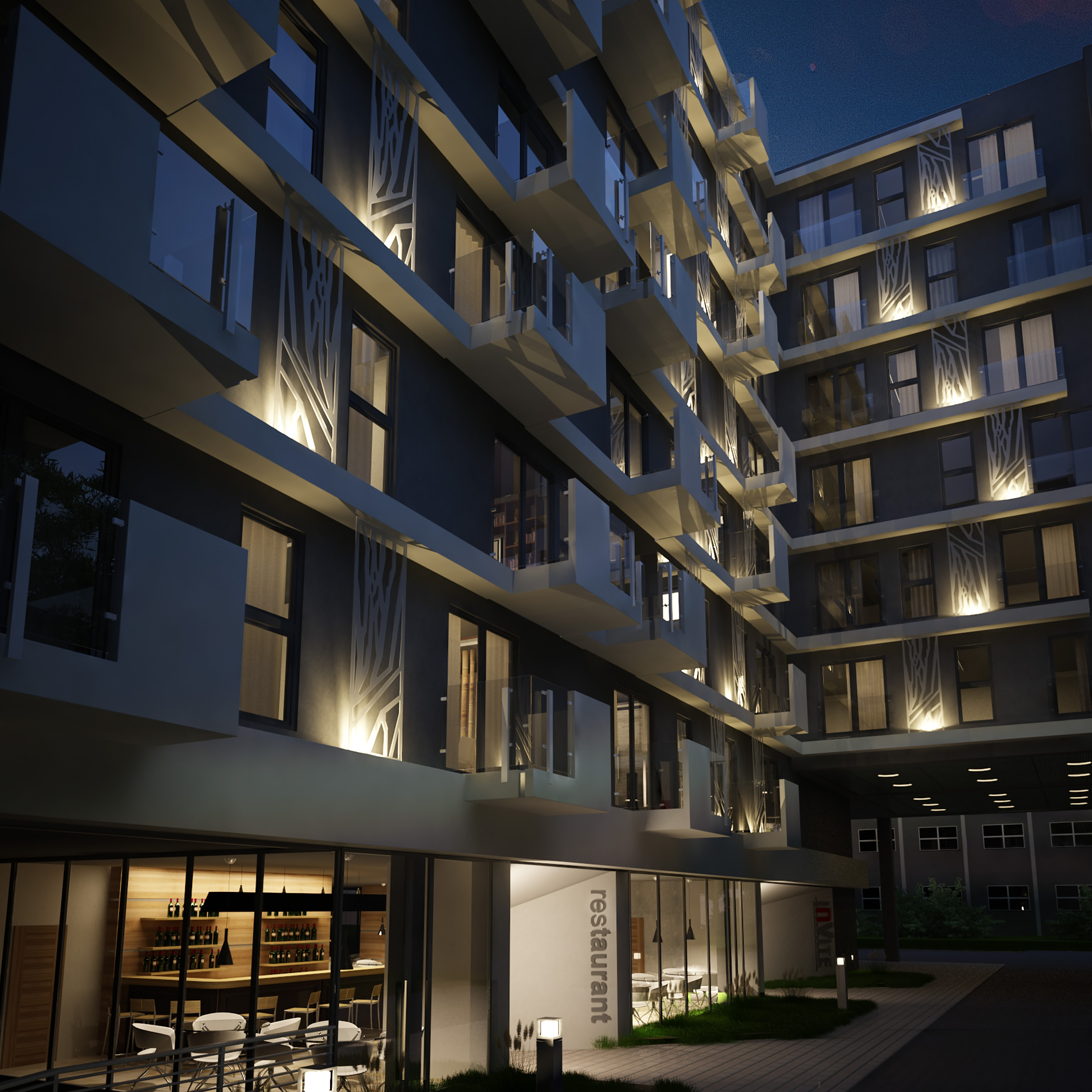 - Budynek mieszkalno-usługowy. Część mieszkalna schowana w głębi podwórza, natomiast część biurowa usytuowana jest przy pierzei ul. Hubskiej. Charakterystycznym elementem budynku jest biomorficzna fasada.