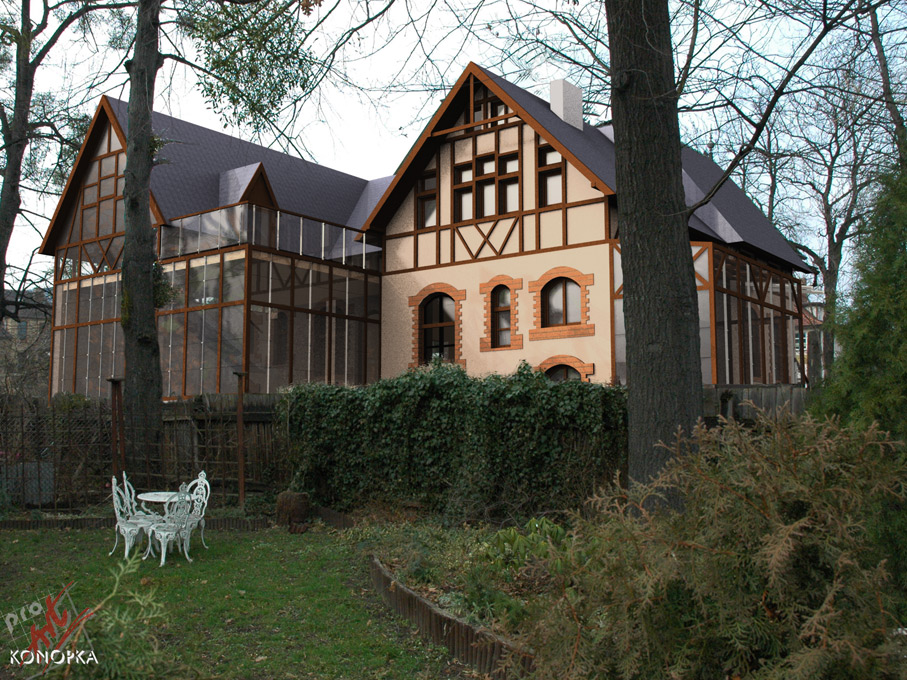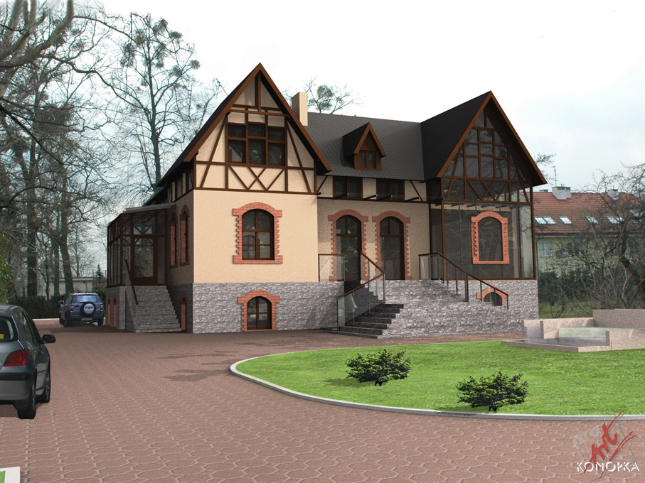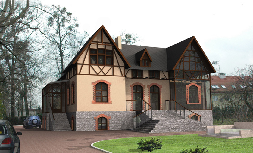 Rozbudowa dawnej willi mieszkalnej o nowe skrzydło i adaptacja budynku na cele biurowe.
