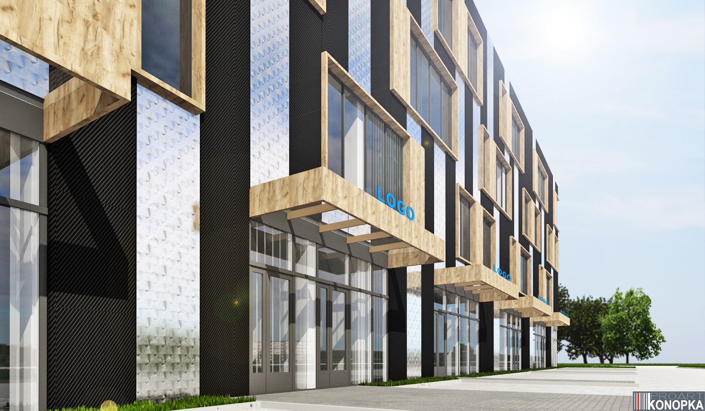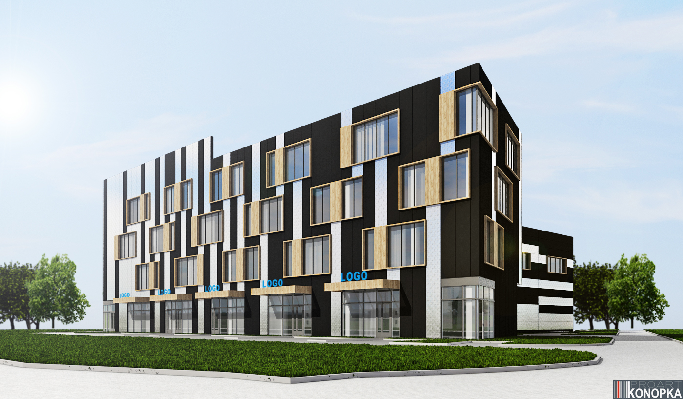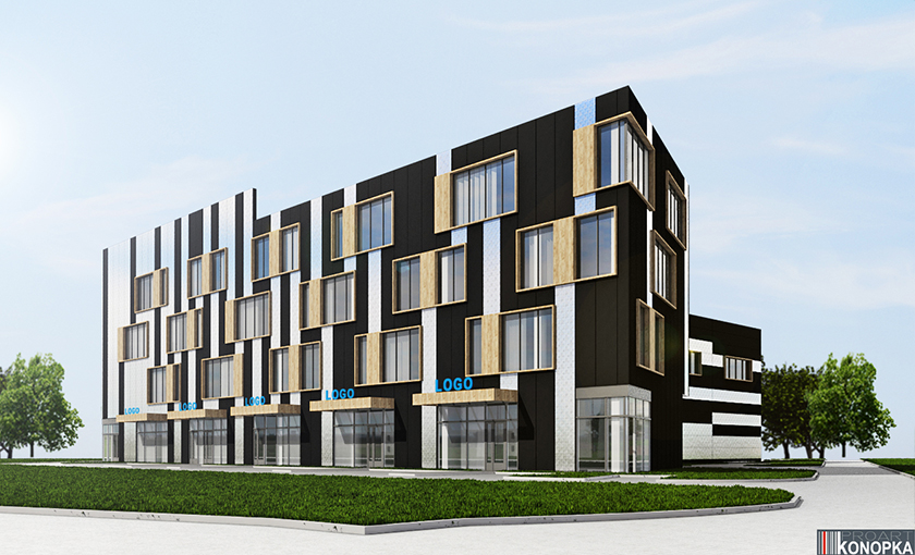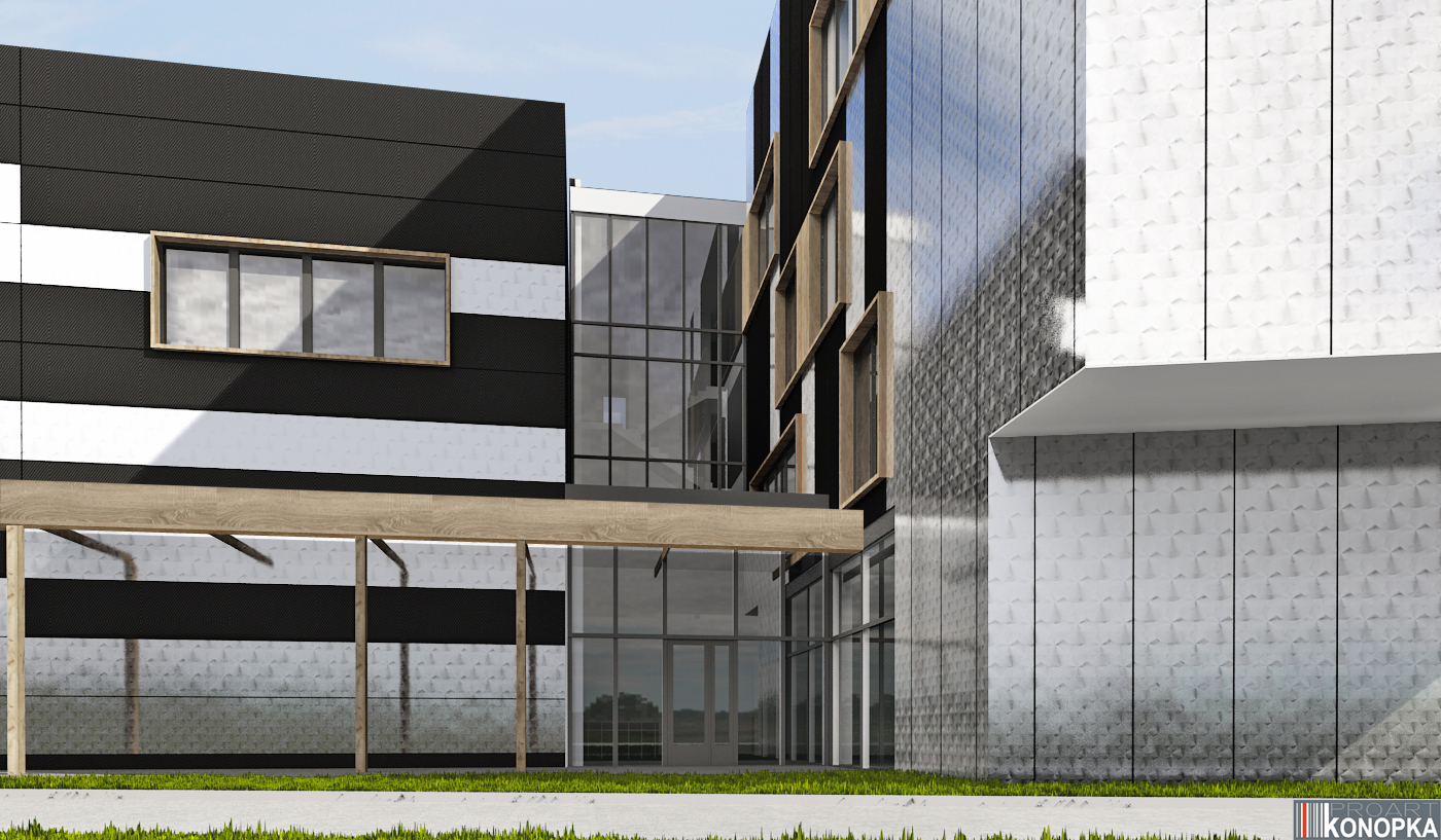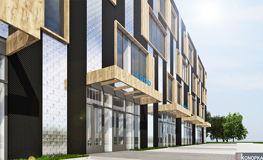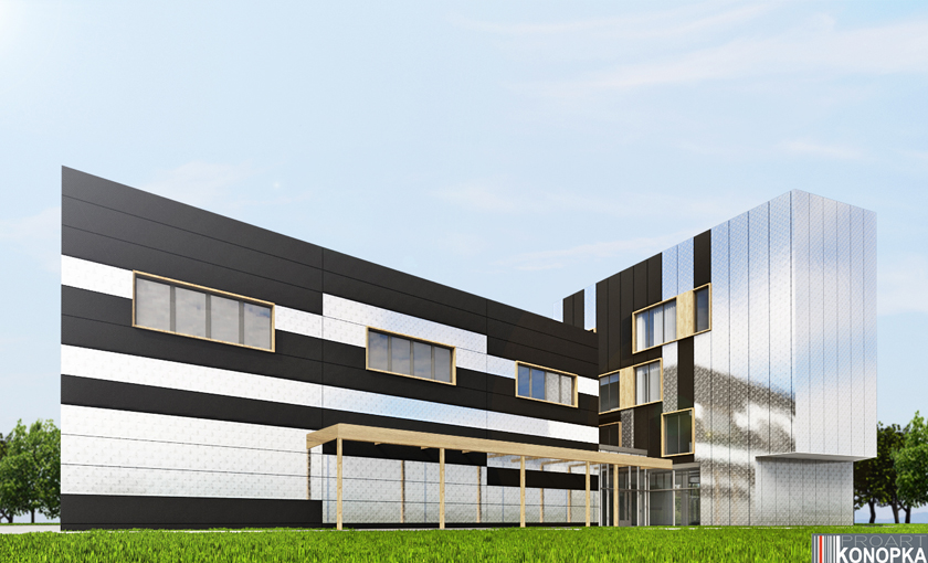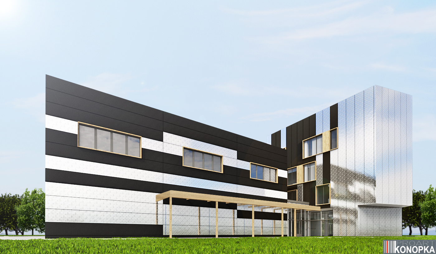- Budynek biurowy z halą magazynową i parkingiem podziemnym.