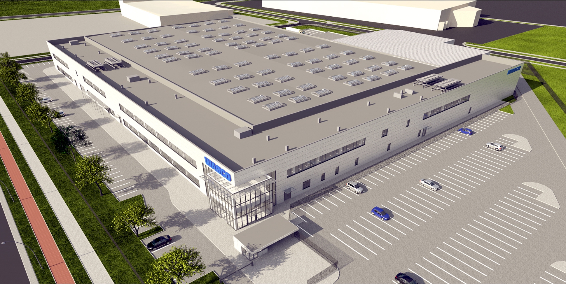 - Zakład firmy Wabco, składający się z dwukondyngacyjnego biurowca oraz jednokondygnacyjnej hali produkcyjnej.